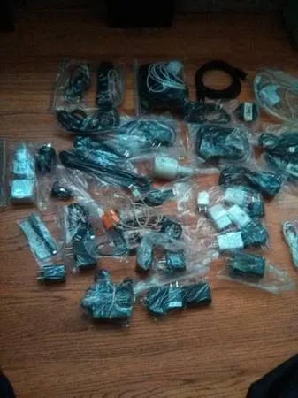 cell phone chargers wall plug lighter usb counted 45 just the chargers and usb cables text 818-390-4094