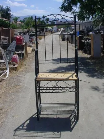 metal shelf wood shelf and wire shelf wood shelf needs repair missing 1 wood shelf top shelf folds up rack 673/4 inches tall 27 inches long 17 inches wide $ 25.00 call 951-926-6087