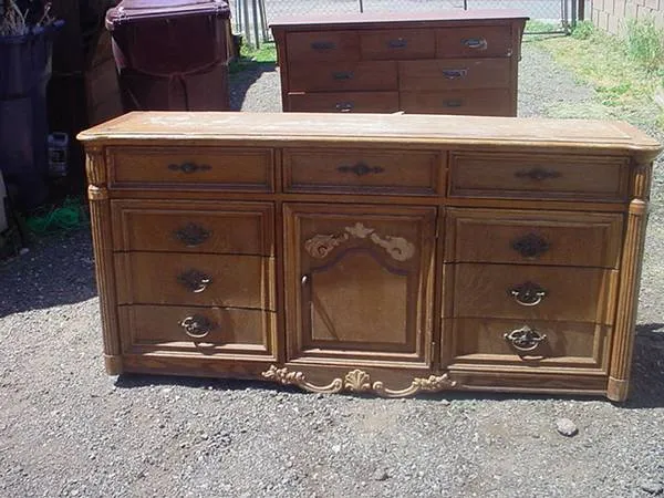STANLEY 9 drawer dresser good condition 1 piece of carving is loose and in a drawer could use a good cleaning and oiling dresser 673/4 inches long 341/2 inches tall 20 inches wide $50.00 call 951-926-6087