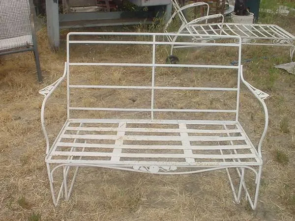 vintage metal glider loveseat good condition love seat has flowers on frame glider 473/4 inches long 311/2 inches tall 261/2 inches wide $40.00 call 951-926-6087