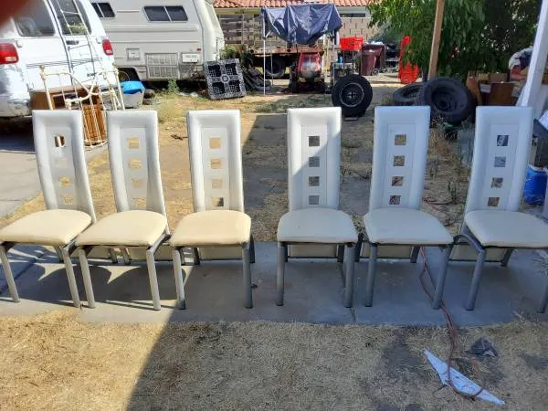6 high back chairs Good condition No name brand Chair 42 inches tall 20 inches long 161/2 Inches Seat h 818 inches $ 75.00 Call 951-926-6087