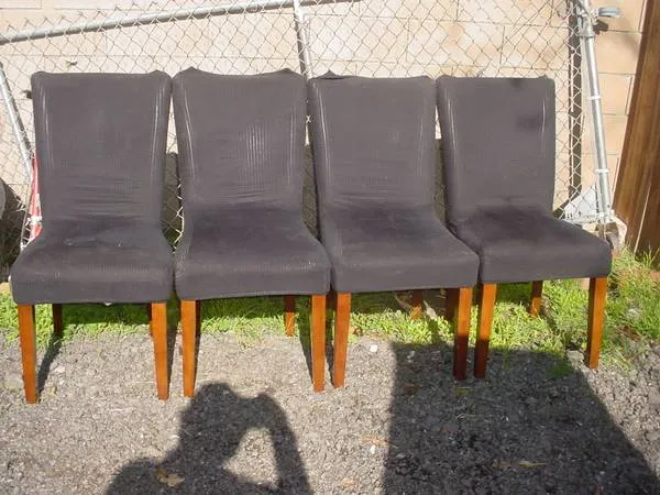 4 dining room chairs upholstered seat and back good condition needs cleaning chair 381/2 inches tall 21 inches long 181/2 inches wide 18 inch seat h 8 $100.00 for the set of 4 call 951-926-6087