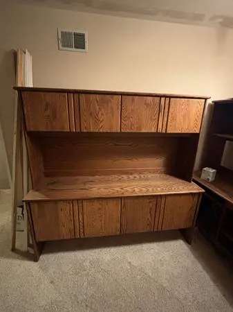Solid wood shelving unit or office bookcase. I believe it’s a Thomasville but I’m not positive. It’s in brand new condition and not a single scratch on. It still looks like New just need it out of the house. Must sell 408-603-8063