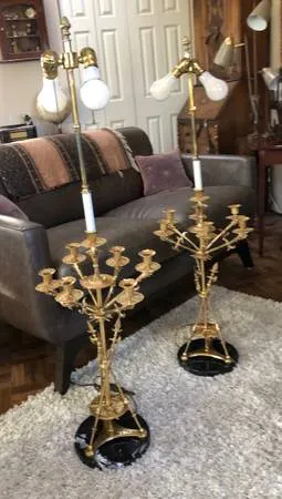 *No Email Please. A pair of unique brass and marble table lamps. 42 h 8. $250.00 George 928-776-1968 #madeinusa #americanmadefurniture