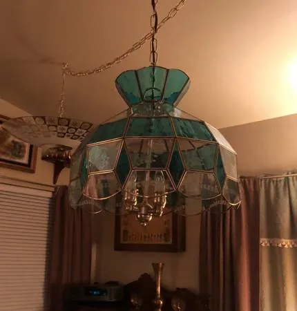 *No email please. A beautiful 15 brass highlighted mid century lamp with etched and colored glass in excellent condition. $75.00 George 928-776-1968