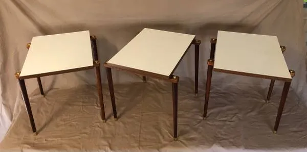 *No email please. A mid century modern 3 part nesting table set. 161/2 x 18, 171/2 h 8, 21 nesting h 8. $200.00 George 928-776-1968