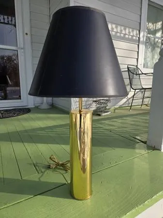Vintage table lamp made mid century by Nessen in solid brass. Measures 30 to top of finial, works fine and is in good vintage condition. Shade included. Cash only $250 text 612-584-3614