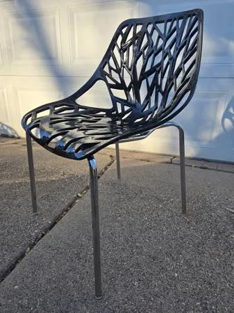 Set of 4 plastic and chrome mod dining chairs. Use indoor or outdoor, all are sturdy and in good vintage condition. Cash only $80 set of 4 text 612-584-3614