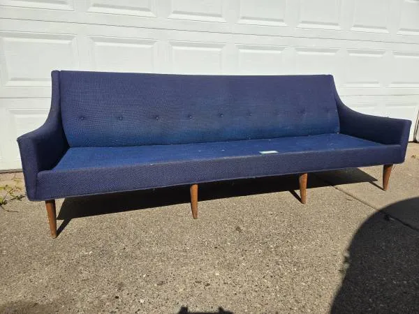 Vintage sofa made mid century by Kroehler for their Avant line. Superb style and exceptional construction it measures 30 T 86 L 32 D and is in good sturdy vintage condition save for needing reupholstery. No cushions included. Cash only $400 text 612-584-3614