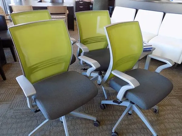 Combined Source Office Furniture New and Used 602-263-8855 or Best 602-391-8884 call/text Designer series Grey Seat Green Mesh back Grey frame conference desk meeting room task chairs. Also a conference table is available as a package price, see other listings. If purchased with conference table additional discount available see other package listing. 9 available $179.00 each This item can be viewed, but Call to set a time to be seen at my new location contact Al on cell 602-391-8884 to set a time to check out this item also have an extensive inventory of many other office furniture to see, apprx. area 3 rd street and Osborn Combined Source Office Furniture New and Used 602-263-8855 or 602-391-8884 We accept Visa, Master Card, American Express, and of course cash Delivery and installation is available new and used office furniture meeting board conference oval round egg boat rectangle work table light dark wood laminate table desk high back modern conference meeting desk computer cubicle work station tilt swivel mid management work station chair mesh green grey designer sit on it