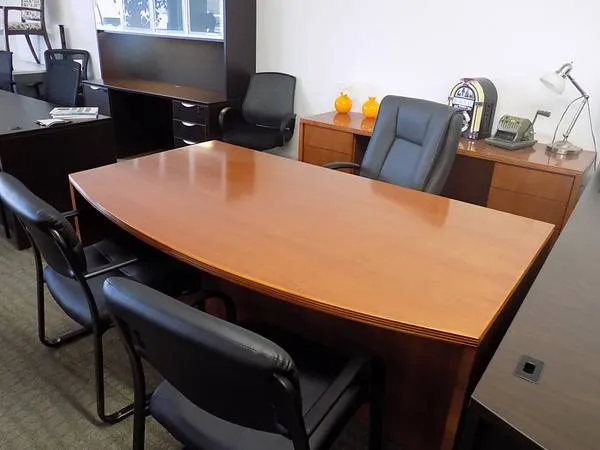 Combined Source Office Furniture New and Used 602-263-8855 or Best 602-391-8884 call/text Executive desk set real wood in cherry finish desk is a Fan Bow front 42 x 72 full length drawers with dictation slides and pencilcenterdrawer knee space 72 matching credenza Both in great condition commercial furniture quality, locally built $2,195.00 also many matching items all from same office only a few left Can be seen at my new location contact Al on cell 602-391-8884 to set a time to check out this unit also have an extensive inventory of many other office furniture to see, apprx. area 3 rd street and Osborn Combined Source Office Furniture New and Used 602-263-8855 or 602-391-8884 We accept Visa, Master Card, American Express, and of course cash Delivery and installation is available combined source new and used office furniture executive wood dark medium cherry mahogany bow arch top case 7 k series desk credenza large