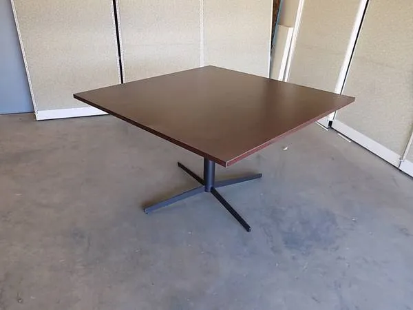 Combined Source Office Furniture New and Used 602-263-8855 or Best 602-391-8884 call/text 48 square meeting conference lunch-break room table. Black base Mahogany 4 top Used Like new, 2 available $139.00 Can be viewed at my shop located around 3 rd street and Osborn Need to call to set a time as I am in & out on appointments with other customers. Cell is best contact Al at 602-391-8884 Combined Source Office Furniture office # 602-263-8855, cell 602-391-8884 We accept Visa, M/C, Amex, and cash--- Delivery and install available for a slight charge Combined source new and used office furniture metal base x cylinder black red mahogany 4 foot meeting conference break room executive square table wood laminate