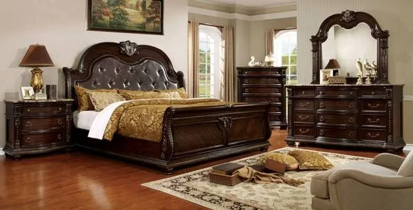 $25994 Pc Bedroom Set, Transitional Style, Solid and Veneer woods, Marble top on nightstand and dresser, Padded leatherette, Brown Cherry Color, Set includes Queen bed, nightstand, dresser, mirror. 7670. 1999.cs Zoes Furniture 214-536-5424 www.zoesfurniture.com 777 S Central Expressway Suite 4 B Richardson, TX 75080 Call By 12:00 PM Get Your Items Same Day $0 Down Take It Home Today! NO Credit Check Financing Available 0 Interest 90 Days Same As Cash Layaway Options Available All Major Credit Cards Accepted Cheapest Assembly Around 24/7 Customer Service Call Anytime What You Waiting For? Cheapest Price Guaranteed! We BEAT Competition Prices! We also sell bedroom sets, living room sets, dining sets, mattresses, electronics and so much more!!