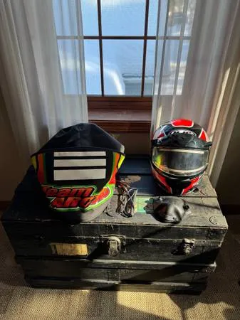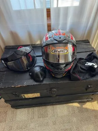 HJC Snowmobile Helmet large with 2 new clear shields ,new mouth piece,2 cloth helmet bags,new helmet chin curtain,new bocklava,if interested please call Tim @ 603-391-5005. Please local sales only,no driver pick up,no shipping,no credit cards or checks cash only. Thanks
