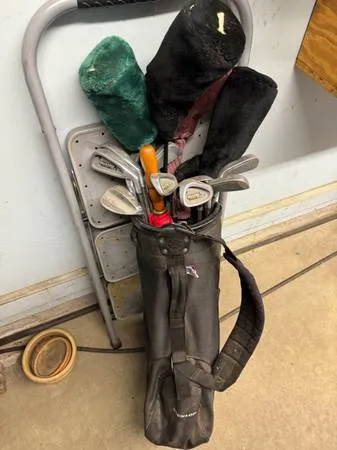 I have 15 Dunlap right hand golf clubs with some covers, golf t’s,approx 45 balls,new right hand glove,umbrella. The bag is included but need a repair, I threw it in because it is holding every. It works but I duck taped the bottom and it needs a little cleaning. See pictures included,if interested please contact Tim @ 603-391-5005. Please local sales only,no shipping,no driver pick up,cash sales only thank you