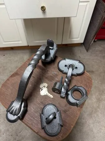 1 front door fancy door handle and dead bolt, 2 right hand door handles and 1 left hand door handle all complete, 3 dead bolts to match. 23/8 or 23/4 back set. 1 satin nickel passage set. All matches except for the 1 satin nickel handle but that is also new never used. Everything is there all new never installed. Retail for over $600 If interested please text or call Tim @ 603-391-5005