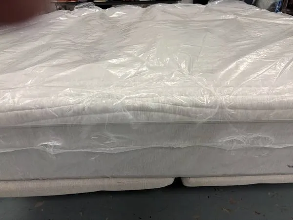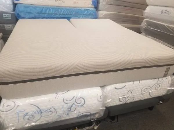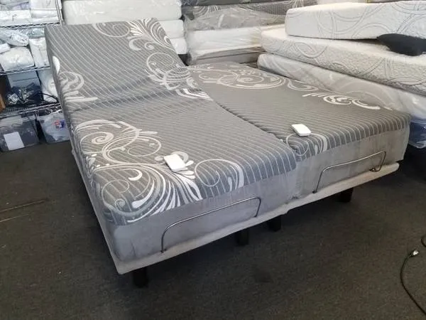 SPLIT TOP KING ILE SLEEP NUMBER MATTRESS WITH FLEXFIT FOUNDATION It’s a “Split TOP KING so each side of the bed can be individually adjusted. Built with dual‐air chamber technology so each sleeper can choose their own firmness setting“Sleep Number”on their side. 12 thick mattress from the Innovation Series — with a plush comfort layer designed for pressure reliefwith z 1 s, and air support beneath. The cover is moisture-wicking and breathable, the comfort foam is designed for cooling and 5-z 1 support. Compatible with adjustable bases from the brandimportant for getting full benefit of the air chambers and “smart” features. MSRP OVER $8000 OURS $1800 WITH 2 YEAR WARRANTY ON ALL PARTS FLEXFIT ADJUSTABLE BED HAS UNLIMITED POSITIONS RAISING HEAD AND FEET UP AND DOWN CLEANED AND SANITIZED 602-686-6433