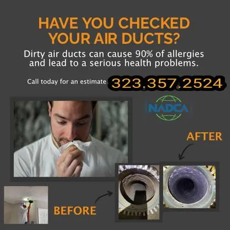 PROFFESIONAL AIR DUCT & DRYER VENT CLEANING.323-357-2524 100 SATISFACTION GUARANTEE. SMOKE DAMAGE? If left untreated for a few days, it can corrode metals, ruin flooring, and damage walls beyond repair. Smoke and soot can affect your homes structure and contents, albeit differently than the fire itself. Unfortunately, this also makes these issues challenging to address throughout the restoration process Smoke damage in duc 2 rk can occur when smoke from a fire or other source enters the air ducts and coats the inside. This can lead to a number of issues, including: Restricted airflow: Smoke and soot can build up and restrict airflow. Poor air quality: Smoke particles can be circulated throughout the home, especially if the HVAC system is running. This can be particularly harmful for people with asthma, allergies, or weakened immune systems. Unpleasant odors: Smoke odors can persist for months. Corrosion: Smoke is corrosive and can cling to metal surfaces, corroding the duc 2 rk. Breeding ground for mold and bacteria: Smoke particles can become trapped in the duc 2 rk and create an environment for mold and bacteria to grow. If your duc 2 rk has been damaged by smoke, its important to have it thoroughly cleaned by a professional. Professionals can use high-powered filtration systems and concentrated chemicals to remove the smoke and restore the duc 2 rk. If your home has been damaged by fire, you should also contact your insurance agent to file a claim. This can help cover the cost of equipment replacements and cleanup. SAME DAY SERVICE. LATE APPOINTMENTS. WEEKENDS. ATTIC CLEANING. DUCT CLEANING & REPLACEMENT. FURNACE CLEANING. CONDENSOR CLEANING. A/C & FURNACE INSTALLATION! DONT HESITATE AND CALL NOW DECONTAMINATION SMOKING ODOR REMOVAL AMO call for details. Dryer vent cleaning ...................$69.00 * Using Negative Pressure Machine. * Unlimited supply vents and ducts. * Inspection of intake vents *Inspection OF Coil And Blower Motor. * Inspection For The Dryer. *before and after pictures!!! Why Clean Your Air Ducts? The Environmental Protection Agency reports that indoor air has been found to be more polluted than outdoor air. Air ducts, a major comp 1 nt of your HVAC system, work like the “lungs” of your home. It is important to keep them healthy with regular cleanings by a professional air duct cleaning company in order to keep the air in your home clean and safe. Contaminants such as dust, pollen, mold, pet dander and bacteria flow through HVAC systems and get recirculated an average of 5 to 7 times per day. This not only increases the risk of illness in the home but it causes build-up in the air ducts over time, which makes them less efficient and increases energy costs. The U.S. Department of Energy research shows that 25-40 percent of energy used for heating or cooling a home is wasted. Dirty air ducts and the contaminants they recirculate in the home can be a major contributor to health issues or worsen health conditions like autoimmune disorders, allergies and asthma. The Benefits of Air Duct Cleaning: Removes indoor air pollutants including allergens & bacteria. Reduces health issues sucha as allergies & asthma. Ensures clean breathing air is recirculating in your home. Lowers energy costs with better airflow. Extends the life of your furnace CALL NOW FOR A FREE NO OBLIGATION ESTIMATE 323-357-2524 COMMERCIAL HVAC cleaning is a critical aspect of maintaining a healthy and safe working environment for building occupants. It is a process that involves clearing the entire HVAC system of dirt, debris, and other contaminants that accumulate over time. Without regular cleaning, these contaminants can negatively impact indoor air quality, causing health problems, and reduce the lifespan of HVAC systems, leading to costly repairs and replacements. By choosing a professional commercial HVAC cleaning service. You can enjoy better indoor air quality, improve HVAC function, solve HVAC issues, and remove contaminants from your building. With our experienced team and advanced equipment, we can deliver the most comprehensive and efficient cleaning services possible, helping to ensure a safer, healthier, and more comfortable working environment for your business. San Fernando Carpet cleaningAgoura Hills 91301 Alhambra 9180191803 Altadena 91001 Arcadia 9100691007 Artesia 90701 Avalon 90704 Azusa 91702 Baldwin Park 91706 Bell 90201 Bellflower 90706 Beverly Hills 902109021190212 Burbank 9150191502915049150591506 Calabasas 91302 Canoga Park 9130391304 Canyon Country 9135191387 Carson 9074590746 Castaic 91384 Cerritos 90703 Chatsworth 91311 Claremont 91711 Compton 902209022190222 Covina 917229172391724 Culver City 9023090232 Diamond Bar 91765 Downey 902409024190242 Duarte 91010 El Monte 9173191732 El Monte - South 91733 El Segundo 90245 Encino 9131691436 Gardena 902479024890249 Glendale 9120191202912039120491205912069120791208 Glendora 91740 Glendora 91741 Granada Hills 91344 Hacienda H 8 s 91745 Harbor City 90710 Hawaiian Gardens 90716 Hawthorne 90250 Hermosa Beach 90254 Huntington Park 90255 Inglewood 9030190302903039030490305 LA Los Angeles 9000390004900069001090011900129001590016900189001990020900239002790029900349003590036900379003990047900579006290063 La Canada Duc 2 rk Repair - Duc 2 rk Installation - Ducts Vents Cleaning - Asbestos Abatement - Exterior Ducting Waterproofing - Duct Roof Penetrations Sealed - Sealing the base of the furnace – Venting through the roof – Stainless Steel Venting – B or Dual Wall Venting – Single Wall Venting – Plastic Venting – Attic Venting – Insulation – Attic Lighting – Attic Ventilation – Whole House Fans – Underground and Under Concrete Duct Inspection and Oriental rug cleaner, steam cleaning. Upholstery cleaning, sofa cleaning, couch cleaning, scotch guard, dry cleaning, furniture cleaning, carpet steam cleaning, pet odor, spot removal, Oriental rug cleaning, steam cleaning. Upholstery cleaning, sofa cleaning, couch cleaning, sc