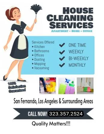 Yamileth: Call or text 323-357-2524☝️☝️☝️☝️ Say goodbye to mediocre and expensive cleanings. I use the right chemicals on the right surfaces! I’m a local housekeeper, with a small team, whos been assisting families with their house cleaning and personal assistance for 22 years. 👉Trus 2 rthy - Many referencesper request 👉Reasonable priced - Low overhead costs 👉Fast service - Next day cleaningon most occasions Services ✅ DEEP CLEANING MOVE-IN/OUT ✅WE PROVIDE ALL THE CLEANING SUPPLIES ✅HIGHLY EXPERIENCED TEAM ✅WE WORK M-F 7 AM - 5 PM BOOK ONLINE, IMMEDIATE RESPONSE. ✅WE have CERTIFICATED INSURANCE, BONDED AND WORK COMP ✅ WE DONT USE SUB-CONTRACTORS. ✅HOUSE CLEANING ✅OFFICE CLEANING ✅Airbnb RENTALS ✅MOVIL HOMES Regular cleaning - Any room, kitchen, floor, carpet, dusting, windows and baseboards + any other relevant areas OR requests. Deep cleaning - Regular cleaning + deep cleaning in kitchen & bathroom, under movable furniture, grudge removal, and any specific requests Move in/out cleaning - Deep cleaning + any other task needed before turning property over Personal assistant - Receive extra help around your home with errands, chores, organizing, and laundry. Why us? Superior cleaning - The correct chemicals, towels, and scents on the right places Trusted by many - Strong, verifiable references Decades of expertise - 22 years of assisting families in whichever way necessary Let’s discuss how I can make the most out of your cleaning. . Bathroom Clean tub/shower Clean toilet Wipe mirrors Clean bathroom sink and counter Clean hard surface floors Change towels Empty trash Bedrooms Change all bedroom linens Vacuum under the bed and all areas Remove any cobwebs Dust picture frames Dust furniture Empty trash Kitchen Clean exterior of the refrigerator Clean exterior of the oven Clean exterior of cabinet doors Clean exterior and interior of the microwave Clean stove range top Clean and shine sink Clean countertops Clean hard surface floors Clean light fixtureswithin reach Empty trash Other Areas Vacuum all areas Remove any cobwebs Wipe rails and door knobs Clean hard surface floors Wipe baseboards Dust ceiling fanswithin reach Dust sills, ledge, wall hangings Dust furniture vacuum furniture Vacuum stairs Empty trash Entrance Clean glass door Sweep/mop entrance Remove any cobwebs Routine Cleaning An all-round routine cleaning service for your home Bathroom Clean tub/shower Clean toilet Wipe mirrors Clean bathroom sink and counter Clean hard surface floors Change towels Empty trash Bedrooms Change master bedroom linen Vacuum under the bed and all areas Remove any cobwebs. Dust picture frames Kitchen Clean exterior of the refrigerator Clean exterior of the oven Spot clean exterior of cabinet doors Clean exterior and interior of the microwave Clean stove range top Clean and shine sink Clean countertops Clean hard surface floors Clean light fixtureswithin reach Empty trash Other Areas Vacuum all areas Remove any cobwebs Wipe rails and door knobs Clean hard surface floors Entrance Clean glass door Sweep/mop entrance Remove any cobwebs Move-Out & Move-In Cleaning Prepare your new home Bathroom Clean tub/shower Clean toilet Wipe mirrors Clean bathroom sink and counter Clean hard surface floors Clean interior and exterior of cabinets Bedrooms And Other Areas Dust all air ventswithin each Dust blinds and window sills Vacuum all areas Clean all light switches Remove any cobwebs Dust all baseboards Wipe rails and door knobs Dust ceiling fanswithin reach Kitchen Clean exterior and interior of all appliances Clean exterior and interior of all cabinets Clean stove range top Clean range hood filter Clean and shine sink Clean counter tops Clean walls around counters Clean all floors Clean light fixtureswithin range Entrance Clean glass door Sweep/mop entrance Remove any cobwebs Laundry Room Housekeeping, san fernando valley maids cleaning services, house cleaner services, Office Cleaning, Move out cleaning, residential cleaning, weekly, bi-weekly cleaning, cleaning services, maids, house cleaning near me, housekeeping, apartment cleaning, Ashburn cleaning, McLean cleaning,house cleaning, Chantilly cleaning services. Deep cleaning services, reliable cleaning, flexibility customized cleaning.#CleaningService, #Moveout maid service los angeles Maid service canoga park maid service reseda maid service WOODLANHills