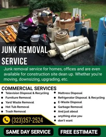 323-357-2524 WE CHUNK YOUR JUNK Our Removal Services FURNITURE We will remove most household furniture such as old Sofas, BedsMattresses and Box Springs, Tables, Chairs, and more! APPLIANCES Have an old kitchen appliance that stopped working or upgraded? Wed be happy to come remove it for you. YARD/BUILDING WASTE That time of the season? Just finished remodeling? We can take a variety of construction and yard waste. ELECTRONICSE-WASTE Cleaning out the office or have outdated electronics laying around? Let us properly dispose of these items for you. starting price of $99 we price based on volumehow much space your yunk take on our truck. just point the junk you want remove and will make it disappear!!!!! Just like that you point and magically will be out of your home or business 100 % SAFE DISPOSAL. we take away your unwanted stuff residential & commercial foreclosure clean out yard clean up junk removal trash removal appliance removal garage clean out dirt removal dirt clean up attic clean out small loads 1 item moving service small demolition haul away anything same day service clean ups washer removal soil removal pallet removal mattress removal junk removal los angeles junk removal orange county junk removal long beach PLS CALL FOR A FREE ESTIMATE 323-357-2524 . . *HOUSE CLEAN OUTS *BUSINESS CLEAN OUTS *GARBAGE CLEAN OUTS *ATTIC CLEAN OUTS *STORAGE CLEAN OUTS *BACK YARD CLEAN OUTS* *HOUSEHOLD JUNK & MISC CLUTTER *DRIVEWAY CLEAN OUTS *COMMERCIAL / OFFICE CLEAN OUTS *FURNITURE / SOFA / CHAIRS / DRESSER ETC. *APPLIANCES, REFRIGERATOR, WASHER/ DRYER *ELECTRONIC TV. COMPUTER ETC *CONSTRUCTION DEBRIS *CEMENT / BRICKS REMOVAL *DIRT GRAVEL REMOVAL *TRASH REMOVAL * DEMOLITION WORK AND REMOVAL. * HOT TUB REMOVAL * ESTATE CLEAN OUTS * ALSO PURCHASING JUNK CARS * DELIVERY SERVICE AVAILABLE San Fernando Carpet cleaningAgoura Hills 91301 Alhambra 9180191803 Altadena 91001 Arcadia 9100691007 Artesia 90701 Avalon 90704 Azusa 91702 Baldwin Park 91706 Bell 90201 Bellflower 90706 Beverly Hills 902109021190212 Burbank 9150191502915049150591506 Calabasas 91302 Canoga Park 9130391304 Canyon Country 9135191387 Carson 9074590746 Castaic 91384 Cerritos 90703 Chatsworth 91311 Claremont 91711 Compton 902209022190222 Covina 917229172391724 Culver City 9023090232 Diamond Bar 91765 Downey 902409024190242 Duarte 91010 El Monte 9173191732 El Monte - South 91733 El Segundo 90245 Encino 9131691436 Gardena 902479024890249 Glendale 9120191202912039120491205912069120791208 Glendora 91740 Glendora 91741 Granada Hills 91344 Hacienda H 8 s 91745 Harbor City 90710 Hawaiian Gardens 90716 Hawthorne 90250 Hermosa Beach 90254 Huntington Park 90255 Inglewood 9030190302903039030490305 LA Los Angeles 9000390004900069001090011900129001590016900189001990020900239002790029900349003590036900379003990047900579006290063 La Canada Flintridge 91011 La Crescenta 91214 La Habra H 8 s 90631 La Mirada 90638 La Puente 9174491746 La Verne 917509004490059 August F. Haw 90061 Baldwin Hills 90008 Bel-Air 90077 Boyle H 8 s 90033 Bren 2 od 90049 Century City 90067 City of Commerce 90040 Dockweiler 90007 Eagle Rock 90041 East L.A. 90022 Echo Park 90026 El Sereno 90032 Firest 1 Park 90001 Glassell 90065 Highland Park 90042 Hollywood 9002890068 Ladera H 8 s 90056 Lincoln H 8 s 90031 Mar Vista 90066 Rancho Park 90064 Sanford 90005 View Park/Windsor Hills 90043 Watts 9000290025 Westchester 90045 Wes 2 od 90024 Lake Hughes 93532 Lakewood 907129071390715 Lancaster 935349353593536 Lawndale 90260 Littlerock 93543 Llano 93544 Lomita 90717 Long Beach 9080290803908049080590806908079080890810908139081490815 Los Angeles 9002190058 Lynwood 90262 Malibu 90265 Manhattan Beach 90266 Marina del ReConstruction Debris Furniture Removal Appliance Removal Bulk Trash Removal Brush and Tree Limb Debris Removal Garbage Removal, Trash Removal, and Junk Removal Remodeling Debris Clean up Warehouse Clean out Storage Unit Clean out Garage Clean out Shed Clean out Garage Sale clean up and Yard Sale leftovers Rental Home and Apartment Clean out Foreclosure and Eviction Clean out Move-Out Services Hoarding Clean outs Light Demolition Wood and Tree Branch Cleanups Yard Cleanups Dumping Services Trash Haul off Hot Shots Mobile Home - Trailer Demolition Delivery Services Curbside pick up Couches-Sofas --- Loveseats --- Any Furniture. Appliances --- Scrap metal --- Refrigerators - freezers - stoves - washer and dryer Treadmill- -office chairs-tables--yard debris--leaf’s-wood-TVs--computers. clean out: house--storage--sheds-buildings---barns Household -- Furniture - appliances -trash---yard waste---etc. Computers electronics recycling.Basement - Garage - Attic cleanouts Construction debris.cleanouts Residential Garage cleanout Remodeling trash Junk metal I also do single item removal junk metal removal Real Estate/rental Clean Outs --foreclosure--Items left behind by prior. garbage and junk of all kinds. From basements, attics, garages, storefronts, warehouses, office buildings, apartments, condos, high rises, construction sites, vacant land and much more. With our unique service, we can remove a lifetimes worth of clutter from your home or business in just a few hours or less. l. Moving dolly labor help debris Uhaul unload cheap affordable mount tv cleaning carpet yard cleaning back yard front yard patio Weed Pulling Clearing Branches,Leaves,Clutter Cleanups washer and dryer installation door removal metal scrap , digging dirt removal trash bags Tree trimming, pruning, removal,tree planting,brush removal, EMERGENCY TREE SERVICE, stump grinding, and firewood Remove,tree,bush,shrub,palm,stump grind,root removal,tree trimming,remove tree,wood chipper,insured,licensed,brush Window Washing WashingGutterCleaning Roof Cleaning removal Solar Panel Cleaning removal Skylight Cleaning removal Shower Door Cleaning removal Hard Water Stain Removal Window Film removal Screen Repair removal AIR CONDITIONING Removal HEATING REPAIR removal AIR CONDITIONING Removal HEAT PUMPS removal MINI SPLIT INSTALL