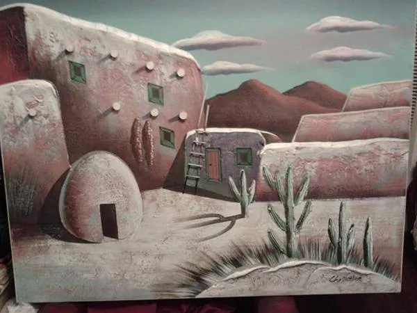 This picture of an Indian Pueblo looks like any picture from the front, but when you get close, especially from a side angle, you can see the logs sticking out and the ladder as well, plus other features. This canvas wall art is in excellent shape and huge, 40 x 50. Call David at 817-357-1773 if interested so we can set an appointment and please leave a voice message if I dont answer right away. No texting, I will Not reply. Correct cash or credit card only and you pick up