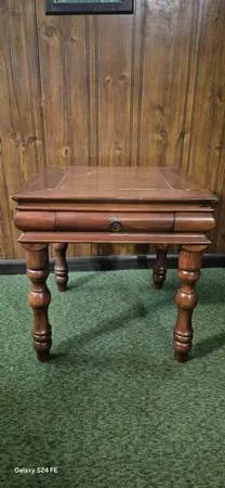 Measures approximately 21 × 21 × 22 tall. Drawer is approximately 12 × 18 with metal ring handle. All 4 legs have padded non skid pads. Excellent condition. Asking only $25. Call or text 508-809-0659