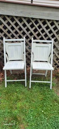 Antique folding wood chairs. Modern folding wood chairs sell for $45 each. Asking only $25 for the pair. Call or text 508-809-0659