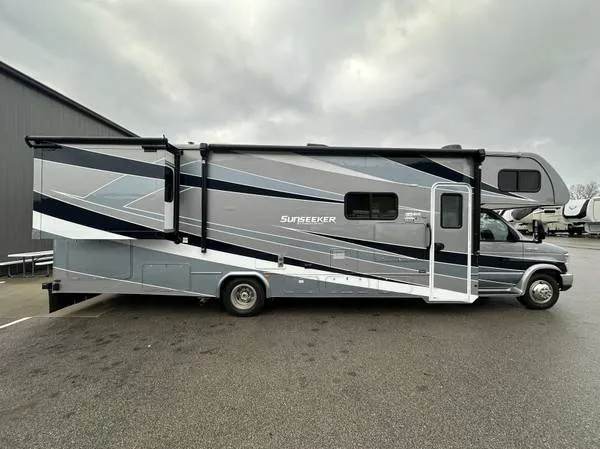 Description - 2020 Sunseeker 3010 DS 2020 Forest River Sunseeker Class C gas motorhome 3010 DS Ford highlights: Full Body Paint Hydraulic Auto Level Split Bathroom Solar Under 25 K Miles Imagine being able to travel with your own bedding, bathroom and cookware to see new scenery and places when you like. You can even invite 7 more people to join you thanks to the 8 total seatbelts. Once at your destination, easily set up the 2 slide outs and power awning with LED light strip and start relaxing or making lunch. The kitchen appliances are across from the large slide allowing you to visit with every 1 while they relax on the U-dinette and sofa. Every 1 can watch the LED TV as well. The exterior offers a crowned fiberglass roof, thick gel coat sidewalls with lightw 8 composite waterproof material, a lane detection monitoring system, a Forest River premium suspension system on Ford models, and heated remote exterior mirrors. You will also find a Sony in-dash CarPlay/Android Play stereo, an in-house entertainment center with outside speakers, upgraded stainless steel appliances, and so much more!! Call or Text Brandon 616-953-9973 or Mike 1-231-670-9025 NO DEALER PREP FEES, AND NO SURPRISE DEALER FEES We take all trades, Autos, RVs, Boats, Side-by-Sides etc., we take everything. We offer shipping to your door! ★★★Let us show you the 𝐁𝐋𝐔𝐄 𝐒𝐓𝐀𝐑 𝐃𝐈𝐅𝐅𝐄𝐑𝐄𝐍𝐂𝐄 ★★★ Best Prices – No Hidden Fees Sunseeker 3010 DS RVs are manufactured by Forest River. 2020 Sunseeker 3010 DS Specifications Sleeps 8 Hitch W 87500 lbs. Ship W 812780 lbs. Gross W 8 GVWR 14500 lbs. Cargo Capacity 1720 LengthExterior 323 H 8 Exterior 113 WidthExterior 84 Slides 2 Fresh Water Capacity 44 gallons Gray Water Capacity 39 gallons Black Water Capacity 39 gallons L.P. Capacity 42 lbs. Bathrooms 1 AC Units 2 AC BTU 13500 Second AC BTU 13500 Furnace Units 1 Furnace BTU 30000 We aim for accuracy and transparency in our online information. While we do our best to provide precise descriptions, pricing, and RV specifications, occasional errors may occur. Please contact us for verification and specific details.