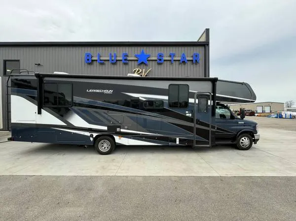 Description - 2023 Leprechaun 319 MB Used Like New 2023 Coachmen Leprechaun Premier 319 MB Class C Motorhome With Only 9,000 Miles! Highlights: Double Slides Hydraulic Auto Level Fiberglass Roof Outside Kitchen Upgraded Alcoa Wheels Bunk Over Cab and So Much More! Youll have the time of your life in this Leprechaun Premier Class C gas motorhome! There is a rear private bedroom with a queen-size bed and a wardrobe slide, and the bedroom is right next to the walk-through bathroom, so you can conveniently get ready in the morning. Out in the main living area, there is a large slide that holds the U-shaped dinette and sofa. These pieces of furniture sit directly across from the kitchen so that you can chat with the chef while preparing meals on the 3-burner range or in the residential-size microwave. If you like, you can add the optional outdoor camp kitchen so you can cook outdoors when you want as well, and the outside entertainment center will provide some fun while youre out there. For premier features and an all-around premier coach, choose the Coachmen Leprechaun Premier Class C gas motorhome! You will appreciate having high-class interiors styled with modern décor. There are premium hardwood cabinets, premium vinyl flooring, and USB charging ports. The construction is created with a CrossFlex PVC polyester reinforced roof material, full aluminum-framed walls, roof, and floor structures, and high-gloss, color-infused HD fiberglass walls with graphics package. Youll also have a power awning with LED lights to use while outside gathering with friends, and the Roto-cast rear warehouse storage compartment can keep your belongings secure. Call or Text Brandon 616-953-9973 Mike 1-231-670-9025 NO DEALER PREP FEES, AND NO SURPRISE DEALER FEES We take all trades, Autos, RVs, Boats, Side-by-Sides etc., we take everything. We offer shipping to your door! ★★★Let us show you the BLUE STAR DIFFERENCE ★★★ Best Prices – No Hidden Fees Leprechaun 319 MB RVs are manufactured by Coachmen. 2023 Leprechaun 319 MB Specifications Gross W 8 GVWR 14500 lbs. LengthExterior 329 H 8 Exterior 109 WidthExterior 83 Slides 2 Fresh Water Capacity 50 gallons Gray Water Capacity 32 gallons Black Water Capacity 29 gallons Beds 8 Bathrooms 1