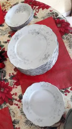 Gorgeous 19-piece set of Plates which consist of 11- 10 Dinner Plates, 4- 77/8 Soup Bowls & 4- 73/4 Salad/Dessert Plates, Blue Floral Pattern Print with scalloped edge & thick trim is sure to complement any table setting. They are in excellent condition and will make a great addition to your collection. Call or Text @ 786-589-9477 for more information! Magnífico juego de 19 platos que consta de platos llanos de 11 a 10, 4 taz 1 s de sopa de 77/8 y 4 Platos para ensalada/pos...