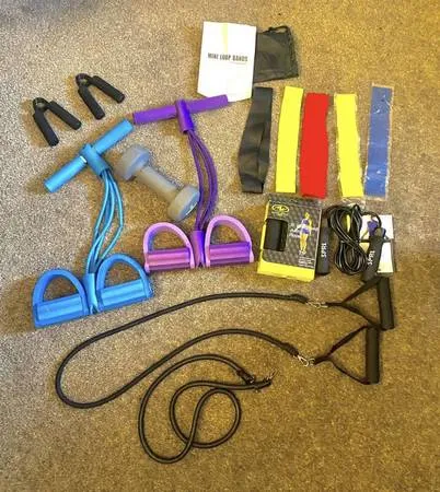 You can do many workouts with these equipment. Most of them are new never used. Text me if interested 619-329-9718 workout equipment, sporting goods, fitness kit set, cardio, w 8 s