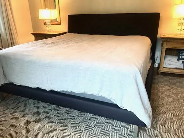 Room and Board Wyatt King bedframestandard/eastern 2 years old headboard footboard side rails and metal slats\ https://www.roomandboard.com/catalog/bedroom/beds/wyatt-bed/370009 CHAR 370009 UPHOL_HEADBOARD=48 H&CHAR 370009 CONLEY_COLORWAYS=G 19 amp;camp=gs 20 amp;k_clickid=_kenshoo_clickid_&utm_source=google&utm_id=go_cmp951-526-7689 adg-99947605914 ad-421243797074 pla-299422824937 dev-c_ext-_prd-3626-2 CD 8 A 216 amp;attr=CM 1 Google_Residential_General_Brand_DMT_US_Prospecting_Sta...