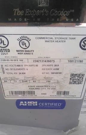 State Commercial Storage Tank Water Heater. Model# CSB-82-18-SFE 100 Never been used. Asking $2500 compare to $5500 For more information, please call Danny at 919-965-1701.