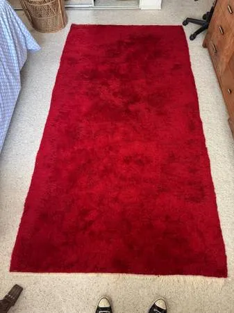Vintage Moroccan Handmade Rug Wool Rabat Moroccan Chichaoua Red 8.85 ft x 4.6 ft S.A.F.T 323-768-7600 TEXT or CALL Pasadena Pick Up