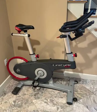 LifeCycle GX Stationary Bike by Life Fitness Purchased at Precision Fitness Equipment in Hanover. Beautiful Stationary Bike that is a much better experience than the Peloton trend! Call or Text Brian for details/pick-up 617-378-2730