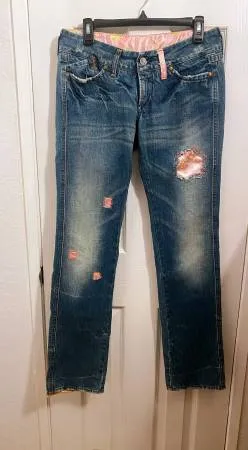Rare Find!!!! Super cute In fantastic condition Seal Kay International Women size 29” waist 33” Inseam Length Made in Italy Straight leg Distressed blue jeans 3- Front pockets 2- Back pockets Zipper & button closure Call or text April