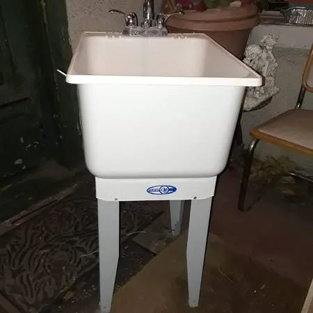 assorted sinks available now.. cast iron sink utility sink aka utility tub sink light w 8 practical and faucets attached as well porcelain toilet pedestal sink sink in the cabinet vanity mirror medicine chest mirror vanity set SEE MORE ADS BY THIS USER..KITCHEN CABINETS WOOD FOR SALE. UTILATUB ELM MUSTEE AND SONS,,,, CLEVELAND OHIO.. SINK THAT IS LIGHTW 8 AND HAS THE FULL FAUCET ALREADY ATTACHED.. metal sinks lip to lip is 25 inside the sink basin is 21 and 7-8 deep AVAILABLE each has its own separate faucets still connected to the sink that is dismantled we happen to have a few cabinets still if you are interested to call us. AVAILABLE 2 CABINETS HERE...near the stove and window 1 more top cabinet top part with 2 doors 12 deep 33 wide 32 tall the bottom cabinet near window and stove is 33 wide and 30 tall sitting on a base to keep it flush with metal sinks.. lip to lip 25 inside wash area 21 cast iron sinks, pedestal sink...modern versus vintage. call please 718-851-1546 and el 7777 atggggggmailllldottt commmm we also have a heavy duty vintage cast iron sink... formica white cabinet with white sink and faucet combo