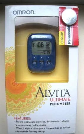 *** Omron Alvita Ultimate Pedometer with battery installed + 1 extra new battery...........$14 Features: - Tracks steps, aerobic steps, distance and calories. Resets at midnight - 7 day memory on the device - Wear it at your hipor place it in your bag or pocket - Auto stride doe easy set-up - Large display for easy viewing - Clock - Measures distance and calories burned Contents: - Pedmeter, Holder, Strap, Clip, BatteryCR 2032 included+ 1 extra CR 2032 and Instruction manual [New Version] https://www.amazon.com/Omron-Walking-Style-Counter-HJ-325 EW/dp/B 019 RVYQWA/ref=sr 13 dib=eyJ 2 IjoiMSJ 9.IKjSaH 5 RRaw 99 aNR 1 YYTDEm 8 A-U_UTyW 9 AGm 3 H_dGPRHiFm 8 GCdciJ 7 ii 9 GUeSRkwmSxcBrndKAkxI-mSMpIMV 7 pTSsibcVkmPjBXMk 0 Kqe 5 sRFQGqCkigSLhjai 5 fkLV 9 fVz-3 MA-cYoKHkk 6 lpekOeOKKc 3 QSXfnD 8 jAJeB 3 PoCQEzRjAsYIceOPfFjgEz 1 Vgg 9 v_sUgsSLgX 9 gz-QA 1 fwncyyGmIQKaUymE 5 QZgI.WJI 6 K 6 d 2 WYMau 5 unnzoU 66 uCsmqbEzG-QWsOPaoMv 7 E&dib_tag=se&keywords=Omron+Go+Smart+Pocket+Pedometer+with 2 D+SmartSensor+Technology&qid=173-243-8616 sr=8-3 pick up and cash pay