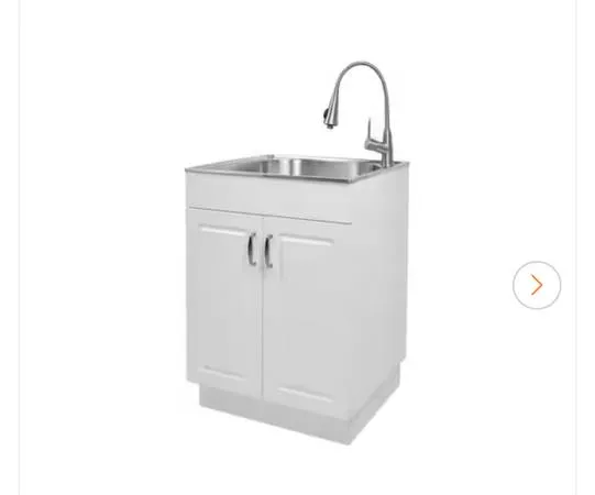 Glacier Bay 24 in. W x 21 in. D x 34 in. L Stainless Steel Laundry/Utility Sink with Faucet and Cabinet in White 602-596-8519