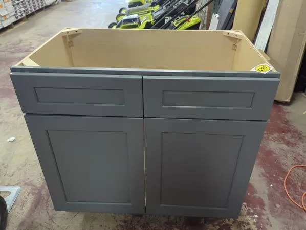 HOMEIBRO 36-in W X 24-in D X 34.5-in H in Shaker Grey Plywood Ready to Assemble Floor Vanity sink base cabinet 602-596-8519