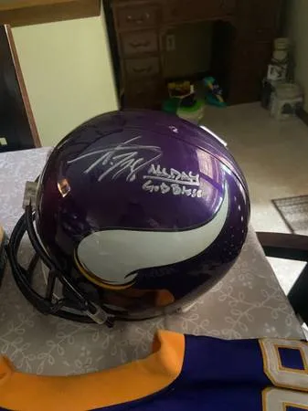 I HAVE ADRIAN PETERSON SIGNED HELMET,FOOTBALL,JOURSEY IS NOT SIGNED PACKAGE PRICE 100.00 CALL 320-493-1691.