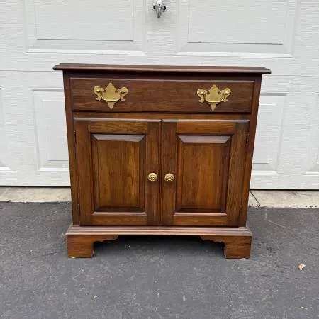 Vintage solid cherry wood nightstand side table. Made by Pennsylvania House. Has 1 dovetail drawer that opens and closes smoothly. Lower storage cabinet. Measures 22 wide x 16 deep x 22 tall. Delivery available. Call or text 614-424-0926.