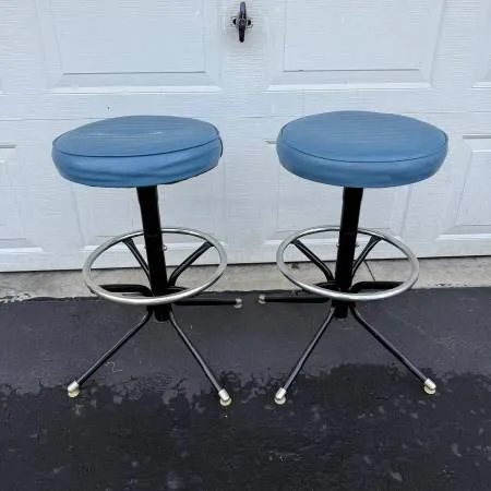 Set of 2 Mid Century MCM stools. They measure 16 wide x 24 tall. Call or text 614-424-0926.