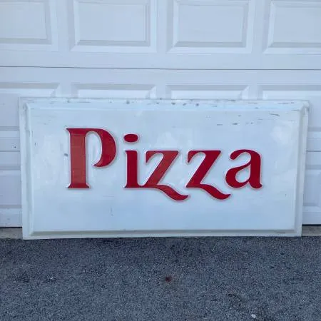Large vintage “Pizza” sign. Measures 72 wide x 36 tall. Call or text 614-424-0926.
