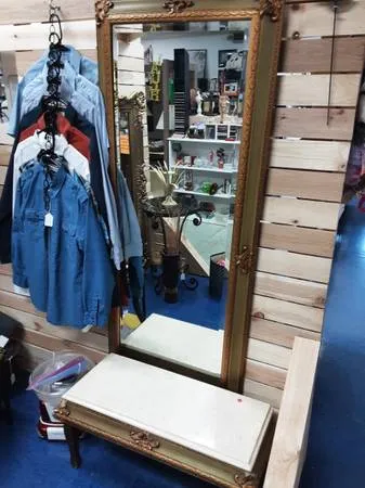Vendor 52932 x 13 x 15 Mirror and Bench Set Rikers Fleas and furniture 407 N Old Wilderness Rd Nixa Mo 65714 phone 417-773-9826 Hours Monday-Saturday 10-6 Sunday 12-5