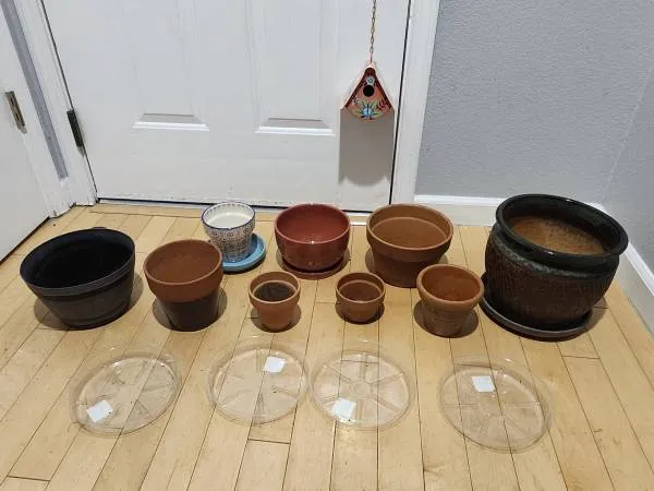 I have several pots for sale, various sizes and also a cute easy to hand bird house. Looking to sell all as a bundle for $30. Cash Only If you are interested please text 415-425-0623 Also have tools see : https://sfbay.craigslist.org/pen/grd/d/brisbane-gardening-tools/7889646968.html Association: Gardening, Landscaping, Moving, Tuscan Gold Sunflowers, Succulents, Bonsai, Natal Plum, Sweet Alyssum, Decor, House, Home, Apartment, Rental, Staging, Terracotta, Ceram...