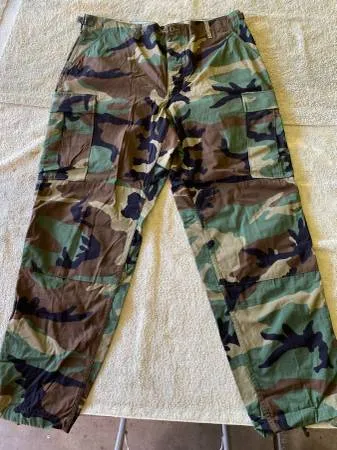 2 Camo US Military Cargo Pants - Mens Large/Regular Fatigues - Both are in Great Shape! Inseam: 291/2 to 321/2 inches Waitst: 35 to 39 inches 4-button fly, adjustable waist 1 Pair is 8415-01-390-8949 Trousers & 1 Pair is 8415-01-084-1017 Please take a look at all of the pictures. $ 50 - Cash Only - Buys Both Pants Please TEXT 602-478-2560. Thanks.