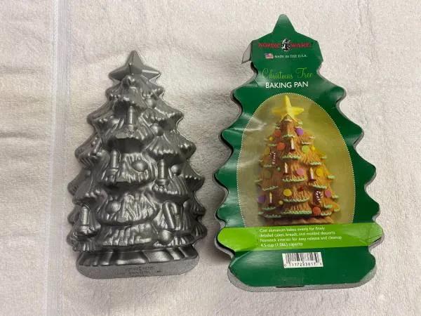 Christmas Tree Nordic Ware Pan, Vintage Holiday Pan, Non-Stick Christmas Tree Baking Pan - Brand NEW!! Heavy cast aluminum for even heating and exceptional durability Nonstick coating for easy food release and cleanup Hand wash with mild detergent Made in the USA Approx. 11 L x 6.5 W Holds approx. 4.5 cups I have 2 of these. $ 18 - Buys 1 Pan - CASH ONLY $ 32 - Buys 2 Pans - CASH ONLY Please TEXT 602-478-2560. Thanks.