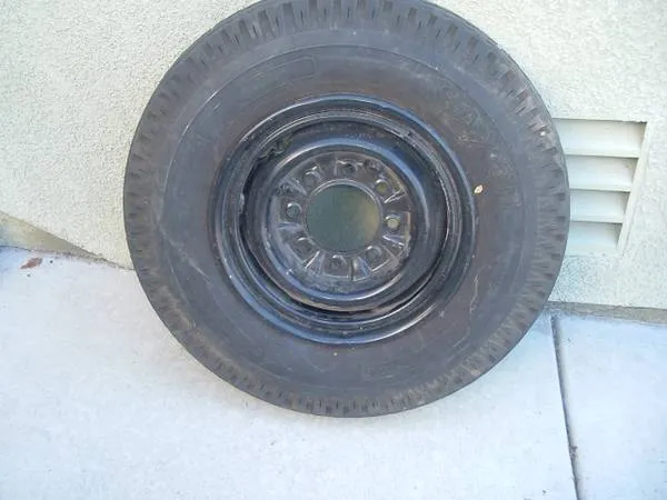 I have a 1951 Chevrolet truck wheel w/tire for sale. The wheel is a stock wheel and is made of steel. The tire and wheel are in good condition. I am asking $20.00 dollars OBO for it. If you have any questions give me a call at 805-610-2182. Thanks, John.
