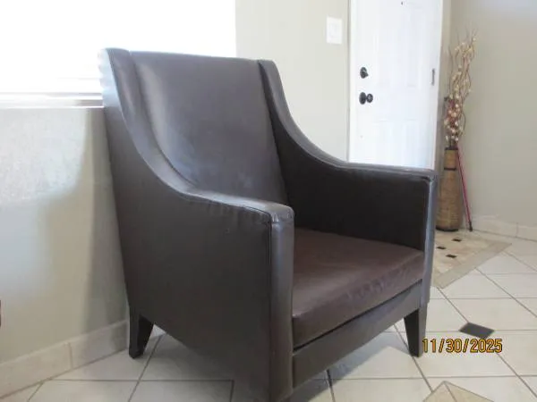 leather armchair. Approximate measurements: 42 Tall, 31 Deep, 31 Wide. 602-471-2565 hablo espanol.